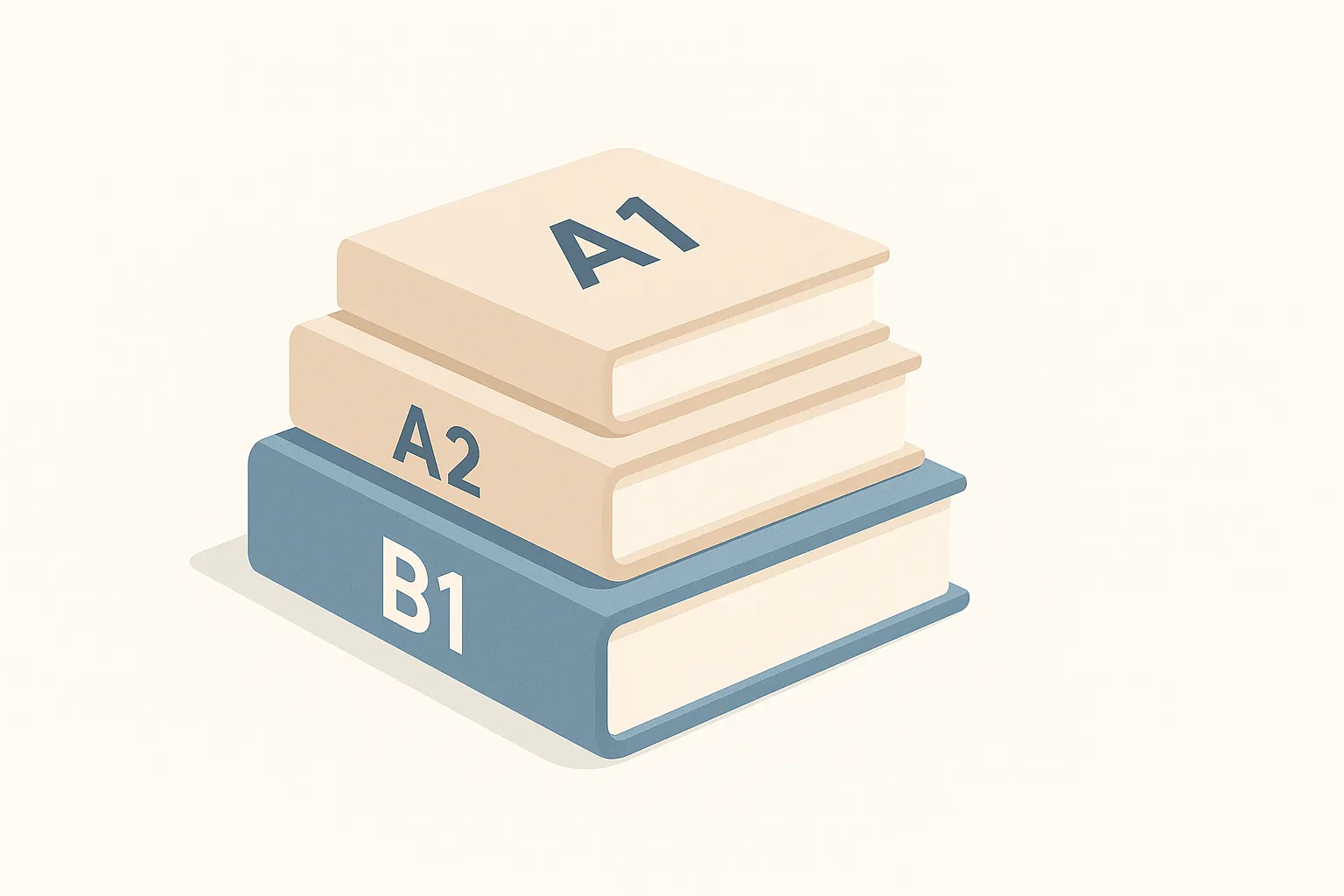 B1 is the hinge level. Up to now, books mainly teach. At B1, books increasingly expose. Choosing books by label starts mattering less than choosing them by function: exposure, consolidation, reference, or exam preparation.